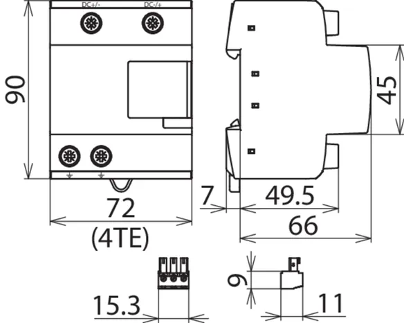 | Największe napięcie PV [DC+ -> DC-] (UCPV ) | ≤ 1500 V |