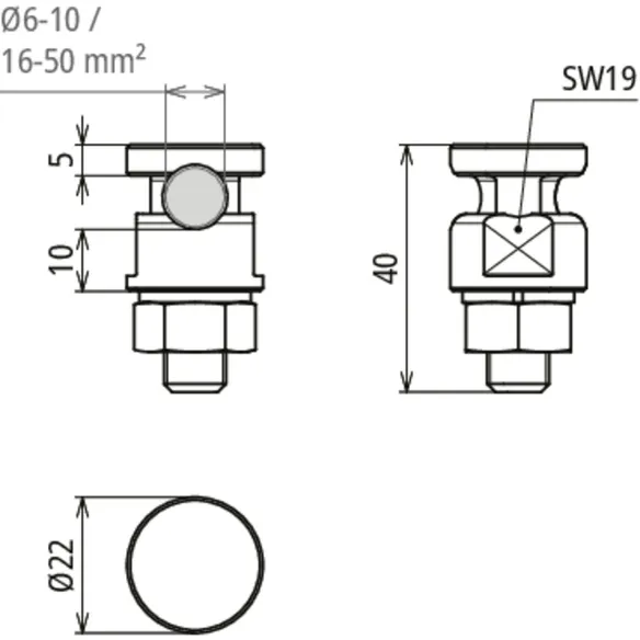 | Przyłączenie (drut / linka) | 16-50 mm2 |