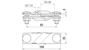 | Zakres zacisku (drut / płaskownik) | 7-10 / 30-40 mm |