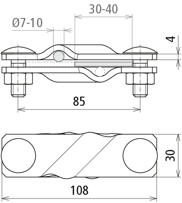 | Zakres zacisku (płaskownik / płaskownik) | 30 / 30 mm |