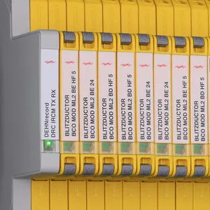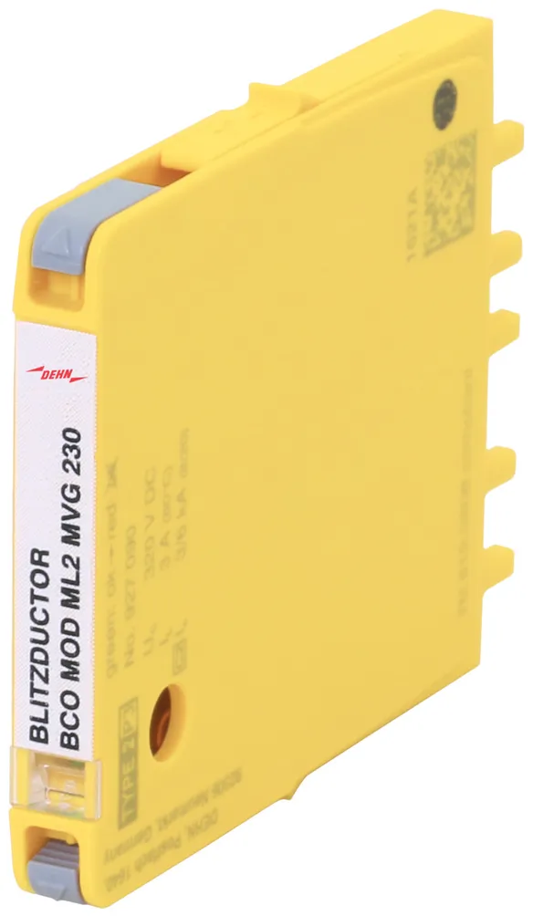 Moduł ochronny o szerokości 6 mm do ogranicznika BLITZDUCTORconnect ze wskaźnikiem stanu, do ochrony 2 linii wielodrutowych bezpotencjałowych interfejsów sygnałowych o napięciu znamionowym 230 V.