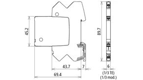 Kompaktowy modułowy ogranicznik przepięć o szerokości 6 mm, z podłączeniem przewodów w technice wtykowej („push-in”), ze wskaźnikiem stanu, do ochrony 2 linii wielodrutowych bezpotencjałowych interfejsów sygnałowych o napięciu znamionowym 230 V.