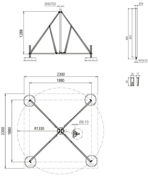 | Wymagana powierzchnia dla statywu | 1880 x 1880 mm |