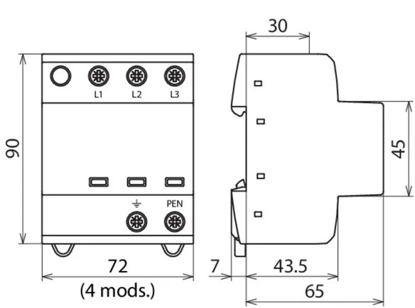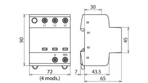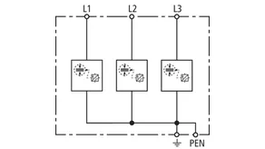 | Prąd udarowy (10/350 µs) [L1+L2+L3-PEN] (Itotal ) | 22,5 kA |