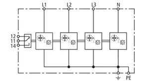| Prąd udarowy (10/350 µs) [L1+L2+L3-PEN] (Itotal ) | 37,5 kA |