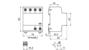 | Prąd udarowy (10/350 µs) [L-N]/[N-PE] (Iimp ) | 7,5 / 15 kA |
