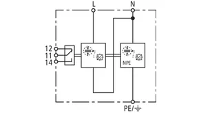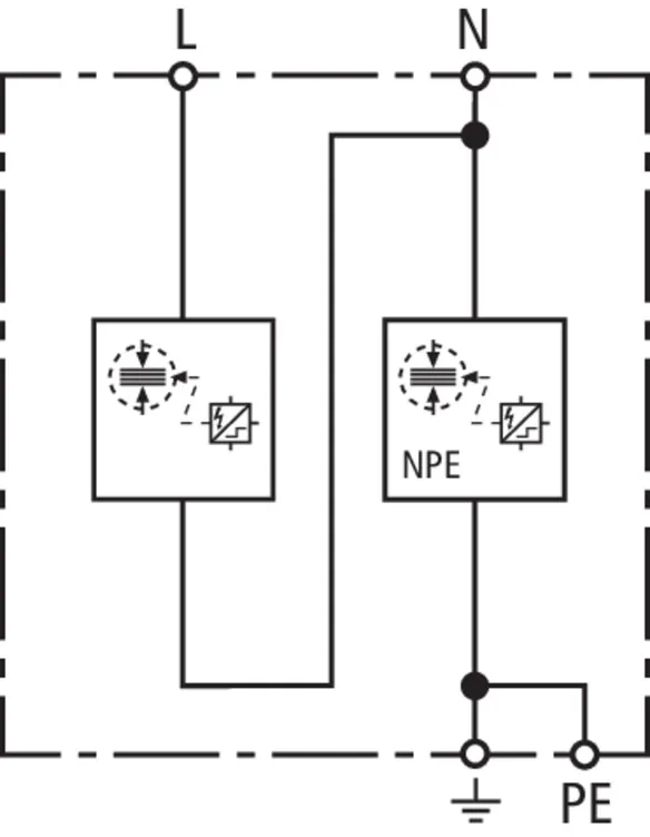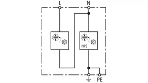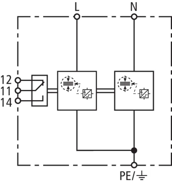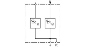 Gotowy do podłączenia, zoptymalizowany pod kątem zastosowania kombinowany ogranicznik przepięć do jednofazowych sieci TT i TN-S do stosowania w rozdzielnicy głównej (układ połączeń „1+1") budynku mieszkalnego bez zewnętrznego urządzenia piorunochronnego (także z zasilaniem napowietrznym); z bezpotencjałowym zestykiem przełącznym.