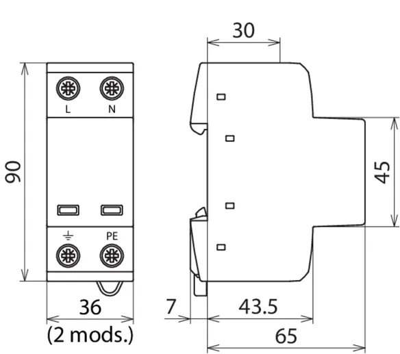 | Prąd udarowy (10/350 µs) [L-N]/[N-PE] (Iimp ) | 7,5 / 30 kA |