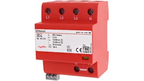 Gotowy do podłączenia, zoptymalizowany pod kątem zastosowania kombinowany ogranicznik przepięć do sieci TT i TN-S do stosowania w rozdzielnicy głównej (układ połączeń "3+1") budynku mieszkalnego bez zewnętrznego urządzenia piorunochronnego (także z zasilaniem napowietrznym); z bezpotencjałowym zestykiem przełącznym.