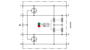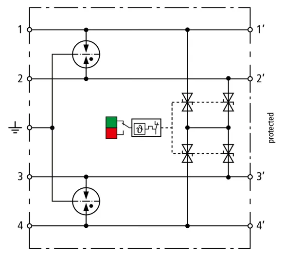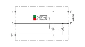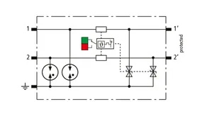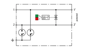 Kompaktowy ogranicznik przepięć o szerokości 6 mm, z podłączeniem przewodów w technice wtykowej („push-in”), ze wskaźnikiem stanu. Jednostopniowe urządzenie z wydajnymi diodami precyzyjnie ograniczające przepięcia do ochrony dwóch pojedynczych linii o wspólnym potencjale odniesienia i interfejsów niesymetrycznych.