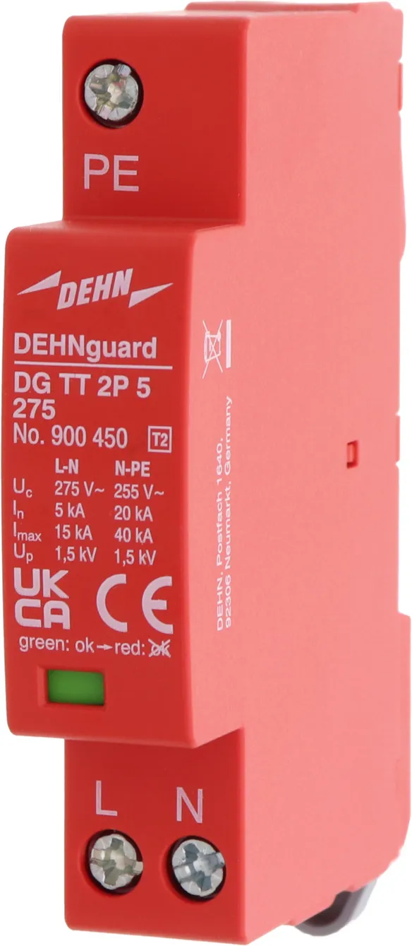 | Znamionowy prąd wyładowczy (8/20 µs) [N-PE] (In ) | 20 kA |