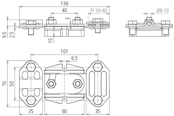 | Zakres zacisku (drut / płaskownik) | 8-10 / 30-40 mm |
