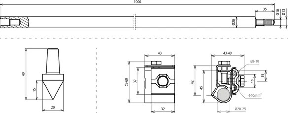 | Wymiary (grot do wbijania uziomów) | 20 x 40 mm |