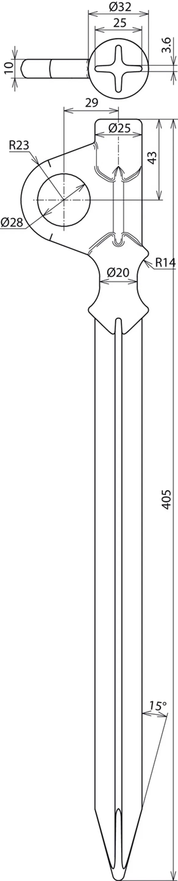 Słupek kotwiący, żeliwo ciągliwe ocynkowane ogniowo, długość 405 mm Słupek kotwiący do napinania części drążków i podpór nożycowych podczas montażu napowietrznych telekomunikacyjnych linii kablowych itp.