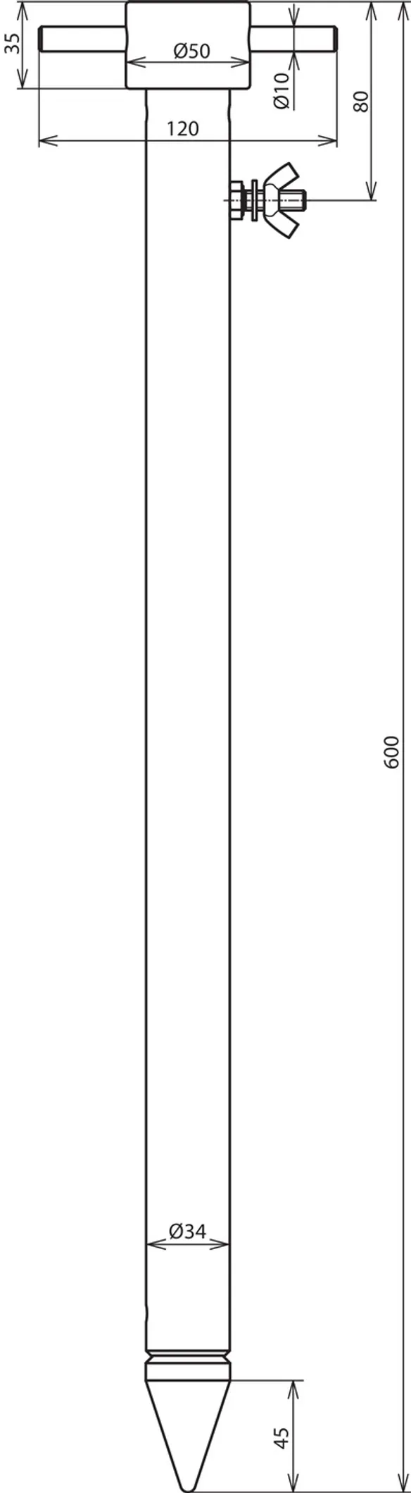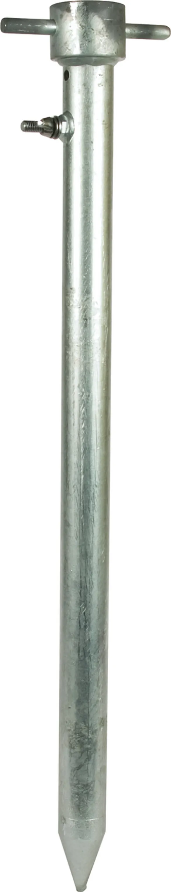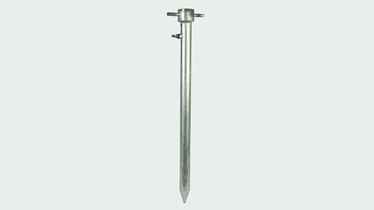 Uziom rurowy z grotem do wbijania uziomów Ze stali ocynkowanej ogniowo, długość pręta 600 mm Uziom rurowy z grotem do wbijania uziomów do uziemiania obiektów ruchomych jak np. pojazdy, generatory prądu itp.
