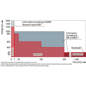 | Długotrwałe napięcie ograniczania (ACrms) (> 200 ms) | maks. 50 V (do ustawienia 3 ... 50 V) *3) |