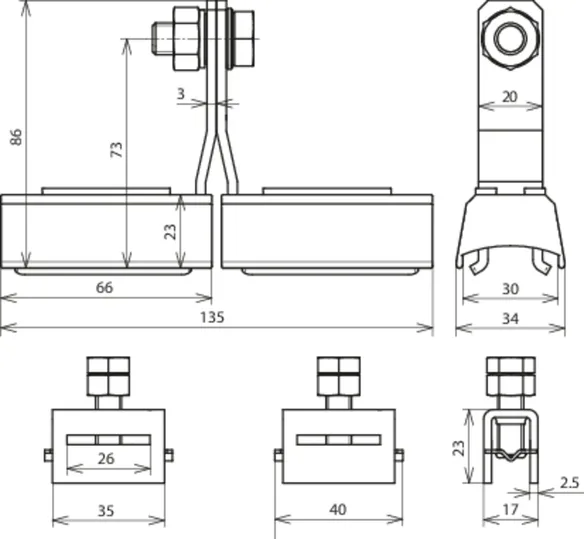 | Prąd udarowy (10/350 µs) stal ocynkowana ogniowo Ø 17-27 mm (3/4") (Iimp ) | 25 kA |
