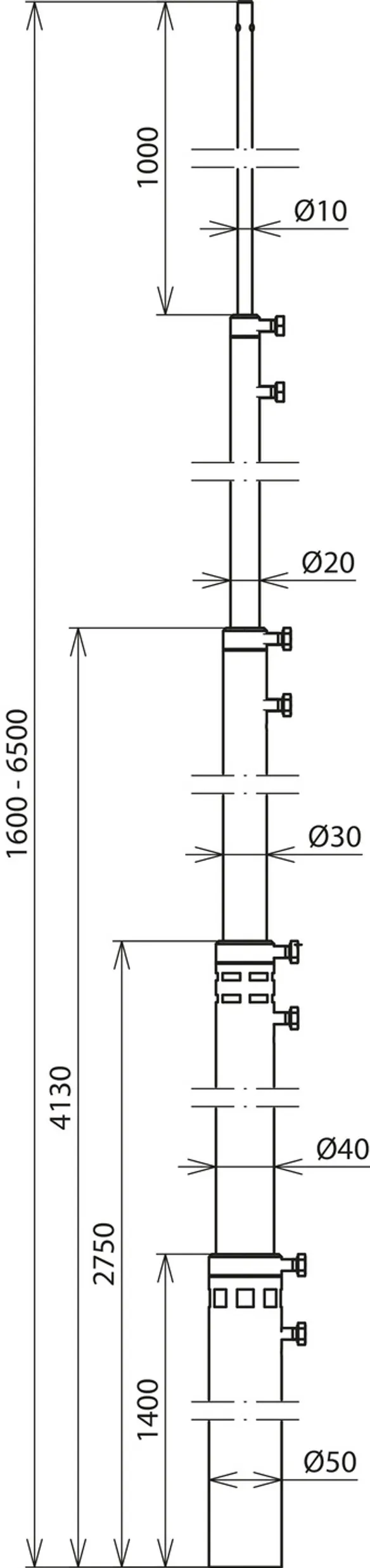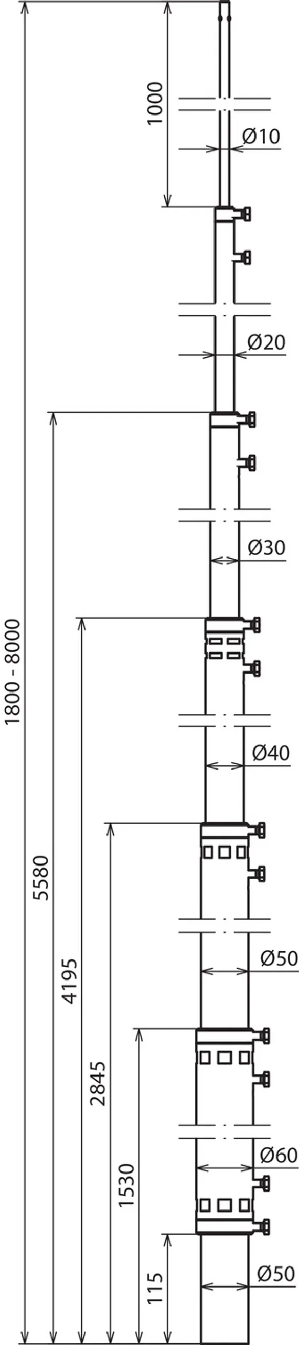 | Maszt odgromowy (Ø długość) | 50/60/50/40/30/20-7000 mm |