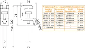 | Do kulowych punktów mocowania o Ø | 25 / 30 mm |