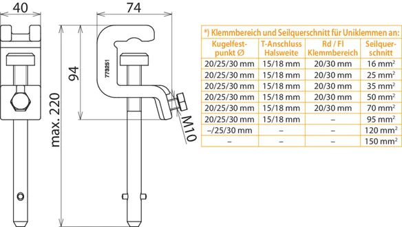 | Do przewodów Cu o przekroju | 50 mm2 |