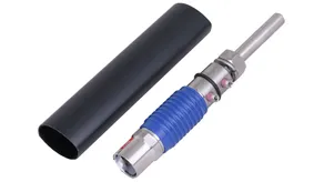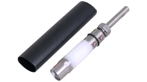 Element przyłączeniowy do zakończenia przewodu HVI light plus, do utworzenia końcówki przyłączeniowej przewodu na rurze wsporczej (odcinek górny) lub podłączenia do innych elementów zewnętrznego urządzenia piorunochronnego lub instalacji uziemiającej. W zestawie koszulka termokurczliwa.
