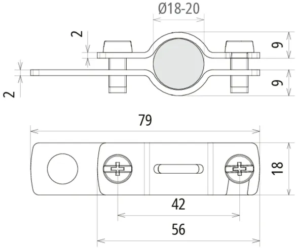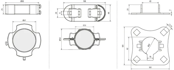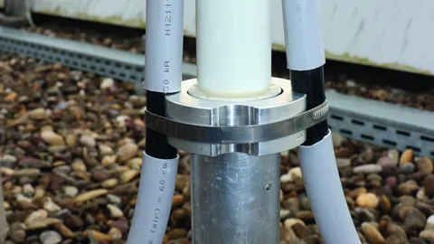 Zestaw mocujący do montażu przewodu HVI light plus na rurach wsporczych HVI light plus Ø40 mm, składający się z płytki przyłączeniowej i pierścienia mocującego z obejmą zaciskową ze stali nierdzewnej do końcówki przepięciowej (wraz z czterema obejmami z tworzywa sztucznego i dwoma opaskami kablowymi).