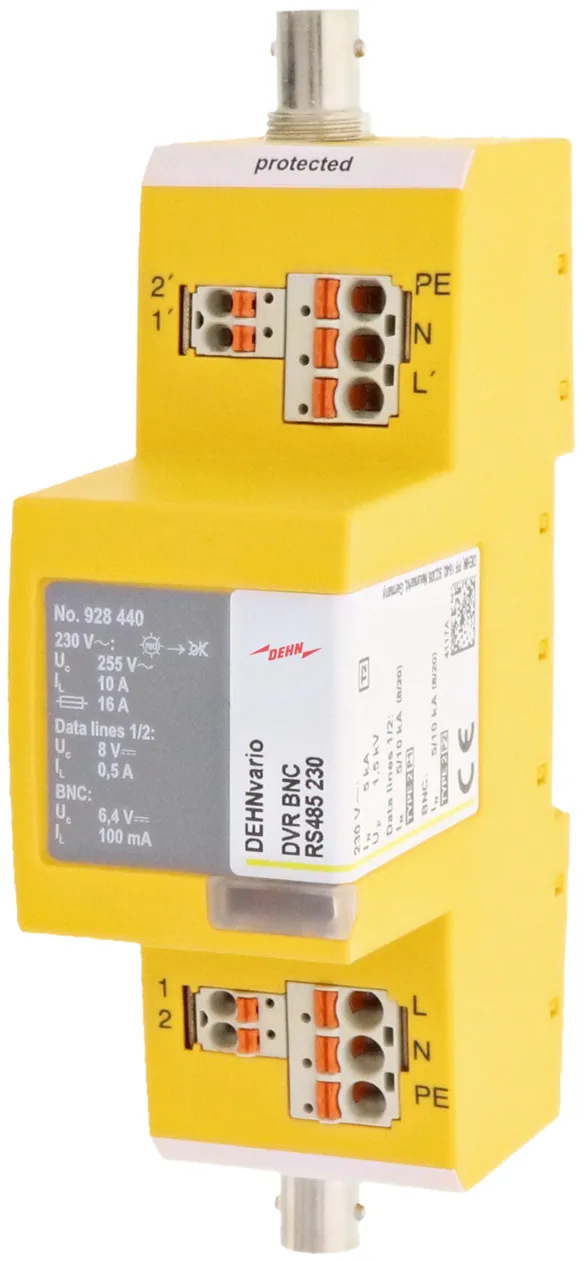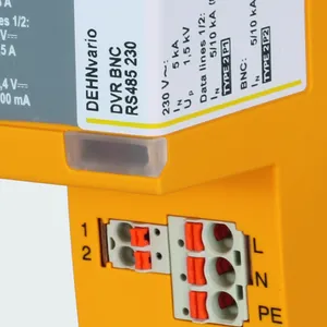 Kompaktowy ogranicznik przepięć 3w1 do ochrony systemów kamer analogowych. Ochrona sygnału wideo (złącze BNC), danych (RS485) i instalacji zasilającej (230 V AC). Technologia wtyku bezpośredniego umożliwia szybkie podłączenie przewodu bez użycia narzędzi. Łatwość wymiany ogranicznika zapewnia zintegrowana kostka zaciskowa, którą można wyjąć z obudowy po naciśnięciu przycisku. Wbudowany wskaźnik przeciążenia (230 V).