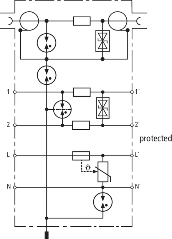 | C2 Znamionowy prąd wyładowczy (8/20 µs) ekran-PG (In ) | 10 kA |
