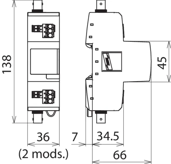 - uziemienie / wyrównanie potencjałów poprzez szynę DIN