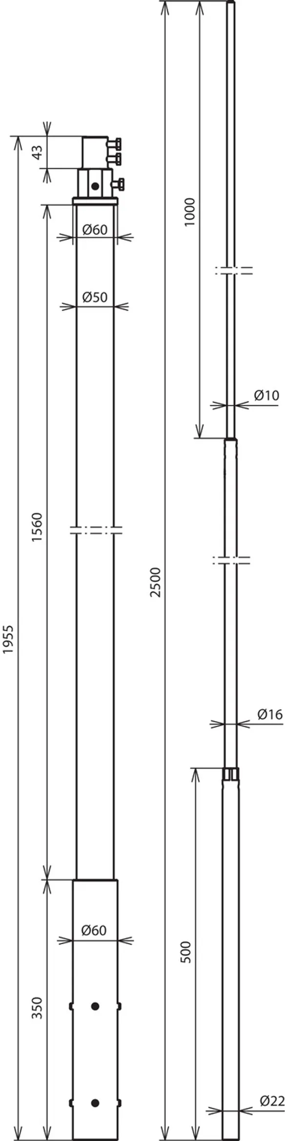 Długość rury wsporczej: 1955 mm