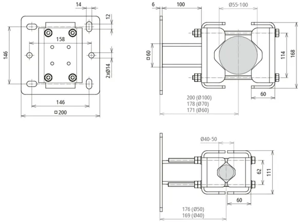 | Clamping range (Ø mast) | 40-50 mm (pionowo) oraz 55-100 mm (poprzecznie) |